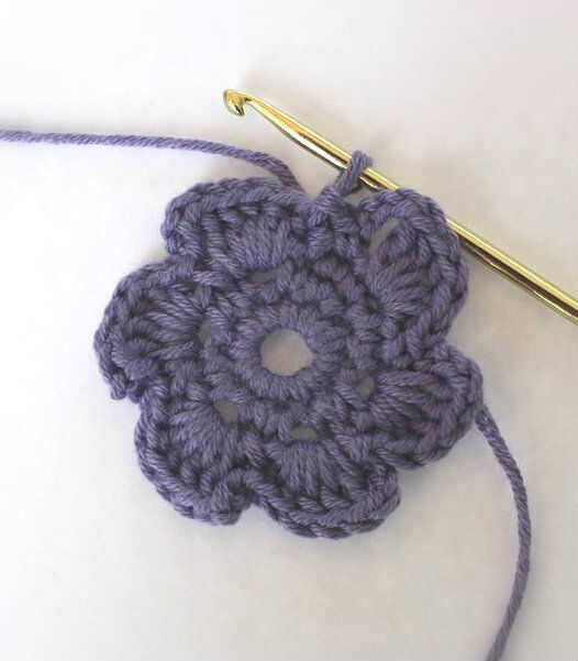 La flor más grande se hace totalmente con el Color A (morada), porque el centro no verse debajo de la flor más pequeña. Aquí está el patrón de la flor más grande: