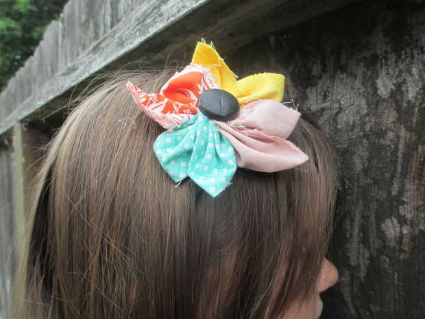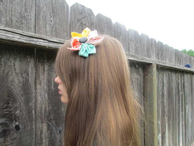 cómo hacer flores de tela, como una brocha o una diapositiva de peloPaso 1: Flores de tela Para hacer flores de tela, corta 5 círculos de material. Un CD viejo es un buen tamaño.Hierro plano y luego doblar una y otra vez y hierro plana, para hacer u