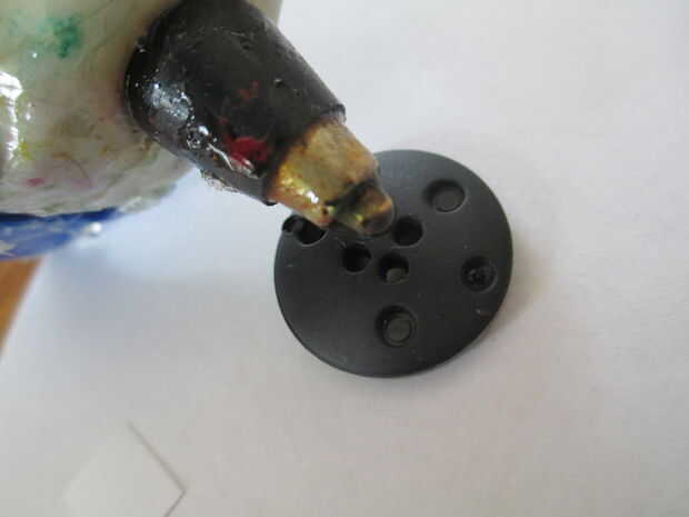 Exprimir una gotita de pegamento en el botón. Adherir un pequeño cuadrado de papel de copia el botón. Ahora pegue el botón en el centro de tu flor.