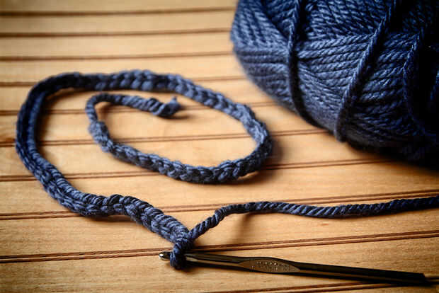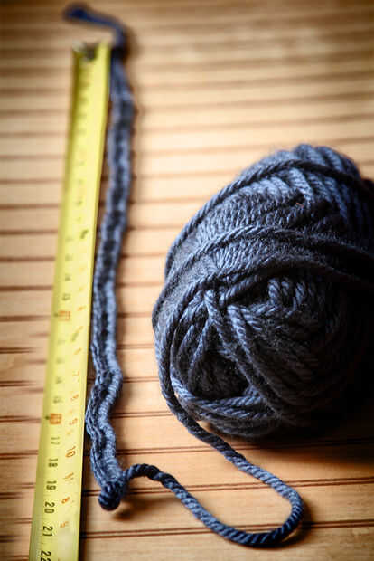 Cadena 68. (ver foto 1) Deberás acabar con una cadena de 20 pulgadas cuando termines. (ver foto 2) Si el tuyo es más corto o más largo, necesitará ajustar la tirantez de su puntada o cambiar a una aguja más grande o más pequeño. 20 pulgadas caben una cabeza de tamaño media si lo haces más largo o más corto que puede terminar con una venda que no encaja. También se puede ajustar haciendo más o menos puntadas para la cadena pero usted tendrá que ajustar en consecuencia su patrón, voy a mostrar cómo en el paso 2.