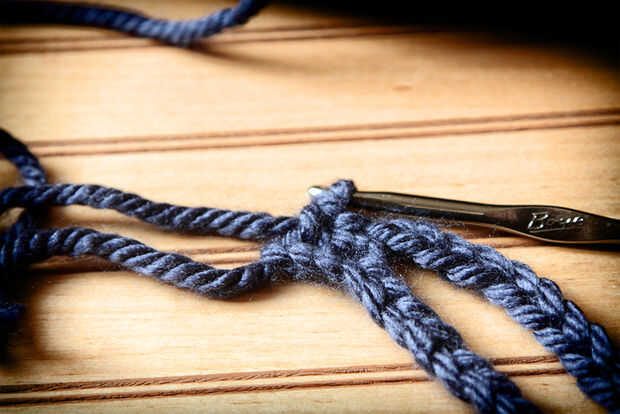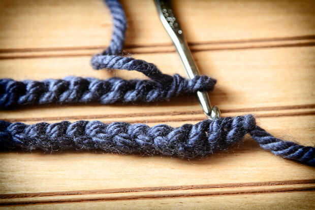 Solo ganchillo en las dos últimas cadenas de la primera cadena (ver foto 1). Ahora las cadenas está conectado (ver foto 2).
