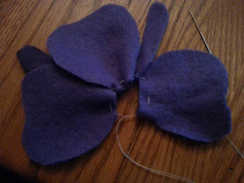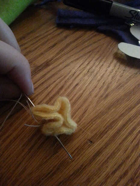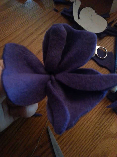 • Un nudo del hilo bien y luego hacer una puntada corriente a través de cada pétalo y tire de ellos juntos para que de la colmena.