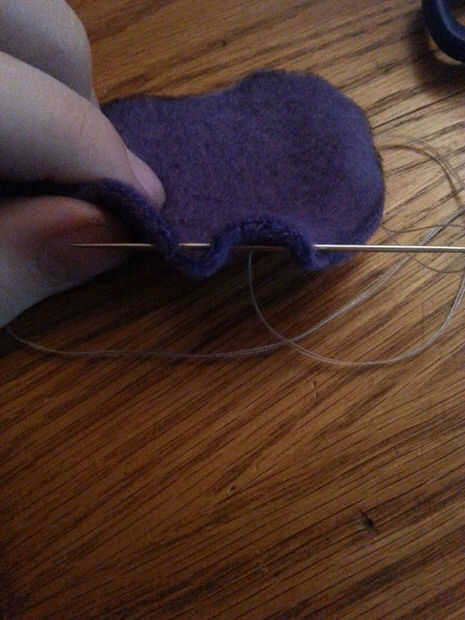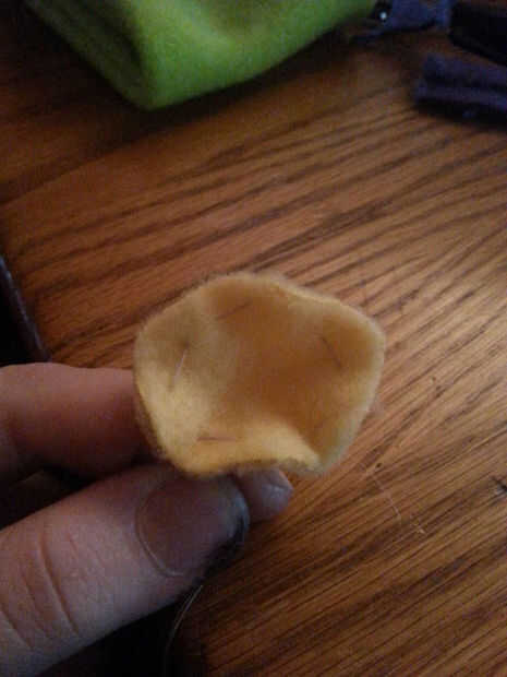 • hacer el brote del centro simplemente cortar un pequeño círculo del tamaño de un cuarto y hacer una puntada de correr todo el camino alrededor de él y tire así que tiene una bola de hojaldre.