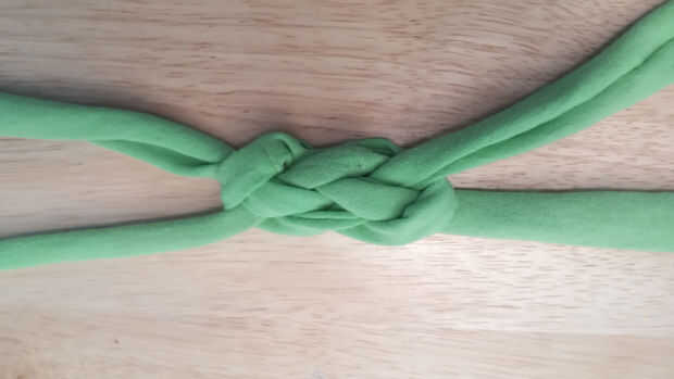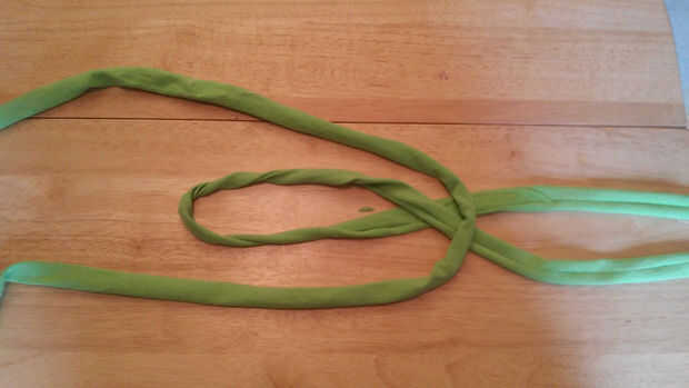 Utilizar dos trozos de tela para atar un nudo céltico con los dos trozos de tela.