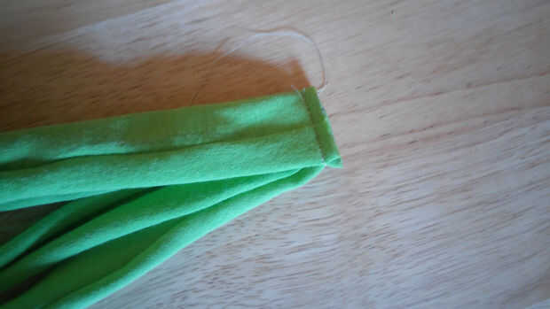1. recoger la tela y reunir los 4 extremos. y coser juntos