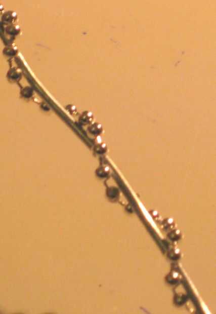 Sumergir la cadena de la bola en el pegamento, asegurándose de que está todo cubierto. La razón para el uso de pegamento de la escuela es porque se seca claro, sino que hacen un fuerte vínculo. empezar a torcer la cadena alrededor del cable, asegúrese de que cada giro es la misma distancia de la última. Una vez esté todo listo, le sugiero con algunas pequeñas pinzas o clips para mantener cualquier bit de perder (sobre todo en los extremos) de venir aparte el cable.