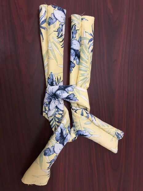 Tomar un extremo y meter por debajo de la primera sección apagado a un lado y a través del extremo doblado.