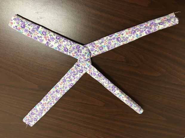 Doblar la otra sección por la mitad y colocar sobre la primera sección, orientados en la dirección opuesta.
