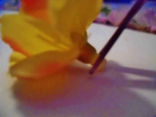 Seleccione el tipo y color de flor que desee utilizar. He mezclado y había emparejado pequeño rosa y mediumish peachy. Se pueden utilizar flores más grandes, si te gusta pero tiendo a lean toda la parte más sutil, sobre todo cuando en viene en piezas de tendencia. Rasgar las flores de sus tallos y corte las puntas de plástico (se muestra) para que fácilmente se pueden coser las flores planas en la diadema.