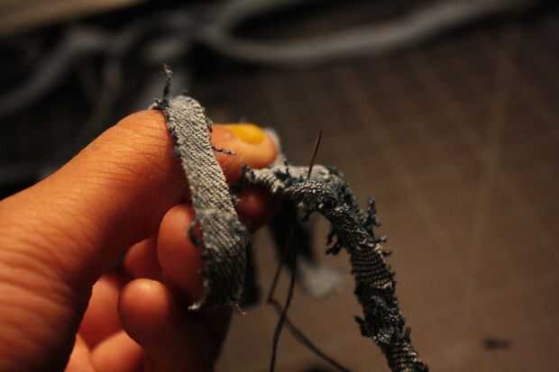 8. coser a través de las tres piezas en el extremo, tratar de coser sobre las tres partes por lo menos tres veces para asegurarse de que son seguros.