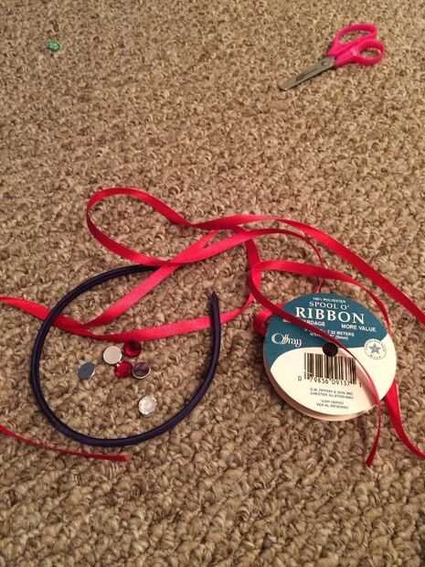 Comenzamos con algunas vendas llanas, alguna cinta, botones y algunas piedras que compré en la tienda de artesanía local. Se pueden utilizar también tienes material de desechos. Y por supuesto tu pistola de pegamento caliente.