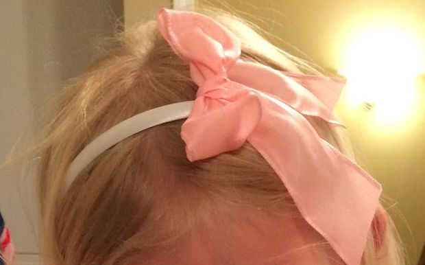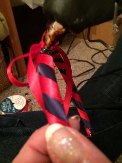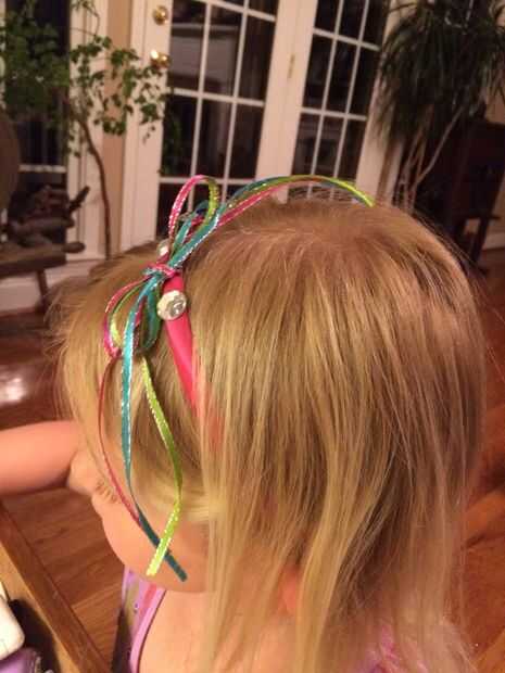 Ahora atar un lazo alrededor de la cabeza y pegar la parte superior. Si hace esto con un niño que escoja la pedrería o botones para agregar a la parte superior. Mi nieta la pedrería y las pegue en. También se puede hacer uno añadiendo un lazo en la parte superior. Hay muchas opciones y ahora tiene una venda especial. También hice algunos cubrirlas con tela para que coincida con los trajes que he hecho antes.