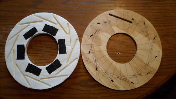 bien, después de mi primer intento en un iris mecánico ayer, quería hacer otro este tiempo con una placa trasera abierta completa.Así que reviso mis dibujos, y cambiar el tamaño de las hojas, por lo que los pernos de la pista de viaje en un camino si