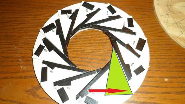 bien, después de mi primer intento en un iris mecánico ayer, quería hacer otro este tiempo con una placa trasera abierta completa.Así que reviso mis dibujos, y cambiar el tamaño de las hojas, por lo que los pernos de la pista de viaje en un camino si