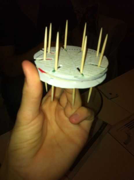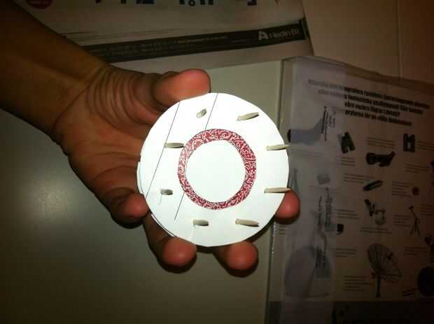 Después de asegurarse de que los agujeros y diapositivas son grandes bastante para los palillos mover, comienza colocando a un lado de las clavijas en las alas en los agujeros de la abertura (el círculo con agujeros), con las alas superpuestas entre sí en un círculo, como se muestra. Ahora poner otro círculo en la parte superior con cada una de las clavijas enfrentadas en una diapositiva. Ahora el iris hacia abajo y gire suavemente los dos trozos de cartulina uno contra el otro. Puede poner en una caja circular y cortar las espigas. Yo espero que usted se inspiró o hacerte este proyecto!