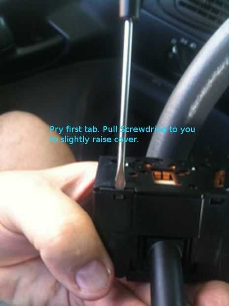 Uso un pequeño destornillador de cabeza plana para soltar las pestañas en el orden indicado.  Había publicado ficha #1, luego usa mi pulgar para mantener la cubierta mientras que lanzó ficha #2.  En este punto, puede levantar la tapa de 3/16".  A continuación, utilice el destornillador pequeño a la liberación de la ficha #3.