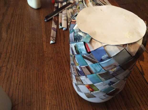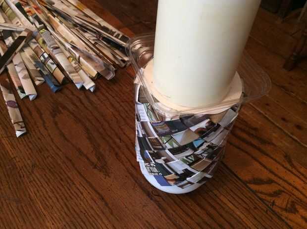Pegar el segundo círculo en el primero y todos los extremos de la tira para crear un aspecto acabado. Poner un peso en ella hasta seco (utilicé una vela del pilar)