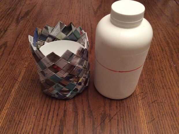Variar el diámetro de la botella (tal vez una lejía o vinagre botella para una cesta amplia). Altura será controlada por la longitud de la tira (sí que podría unir las tiras para mayor altura)