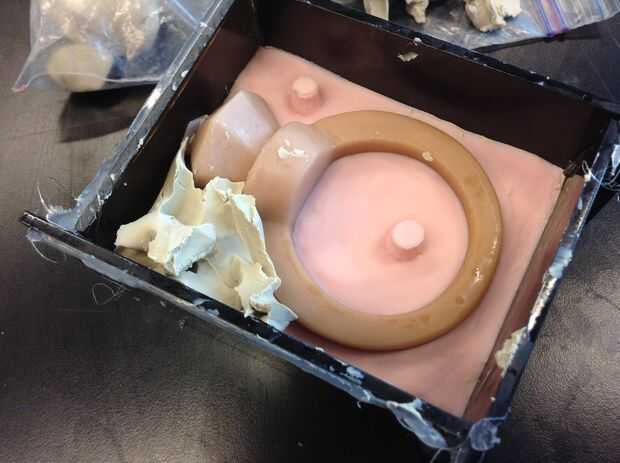 Dar su molde de la primera mitad del tiempo de curación apropiado, luego retire la caja de la base y despegar la arcilla de modelado. Limpia lo mejor posible del modelo, entonces darlo todo otra buena capa de desmoldante y verter la segunda mitad del molde.