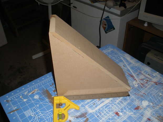 Pegar la tapa base para dos de los triángulos. Nota la orientación de los ángulos de 45 grados en el tablero superior está hacia arriba.