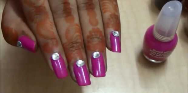 Arte de uñas es una forma creativa para decorar uñas. Es un tipo de arte que se puede hacer en las uñas y uñas de los pies. Llegó a ser conocido en los salones de belleza y se considera como actividad de moda. En este tutorial te mostrará cómo hacer un arte de uñas simple con diamantes de plástico y pintura de uñas Rosa.