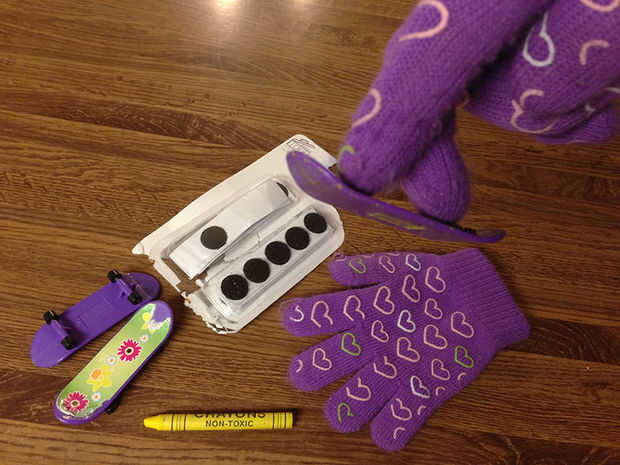 -Una tabla de Skate fingerboard barato. (Esta placa particular vino en un pack de 5 de Big Lots).