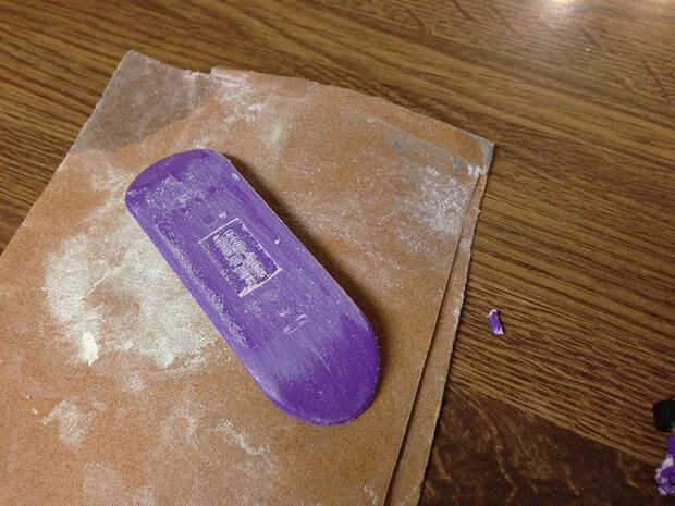 Use una lija de grano áspero y luego un ligero grano (o SOS teclado) para crear un acabado liso en la parte inferior del tablero.