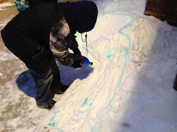 Si usted quiere añadir a la diversión, poner algún colorante en una botella de agua y hágale un agujero en la botella de squirt algunas líneas en la nieve para crear tu pista de snowboard!