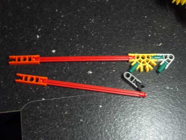 por petición de esto publiqué un tipo de doble tirador de pistola KVG. Puede tirar canicas, centavos, KVG piezas o cualquier cosa que quepa en la bandeja del tiraba.Paso 1: Construcción de la primera parte de la manija. La primera parte de la asa de