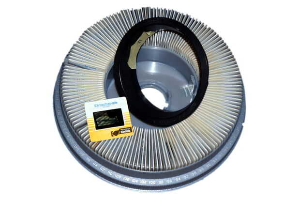 Independiente del formato y tipo de película, diapositivas antiguo es probable que recoger el polvo, la suciedad, arañazos y otros defectos como manchas rosadas o incluso ramificación infecciones de hongo. Es limpiar el portaobjetos (en contraposición a un montaje de cristal) tienden a causar más daño que al limpiar el carro, pero un soplo de un ventilador de mano es vale la pena intentarlo. Escáneres de película profesional como mi Nikon utilizan luz NIR para muchos defectos de la imagen para que software automáticamente puede eliminarlos, pero "curar selección" herramientas de software de edición de imágenes pueden hacer un buen trabajo de síntesis creíbles parches para cubrir los puntos malos que identifica.