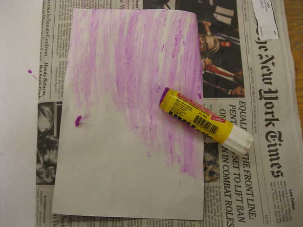 pegamento el papel del trazador de líneas dentro de la cubierta... esto es donde el diario viene bien.  Voltee el papel y cubrir la espalda totalmente a los bordes. Si vas sobre un poco el periódico mantiene su área de trabajo limpia.