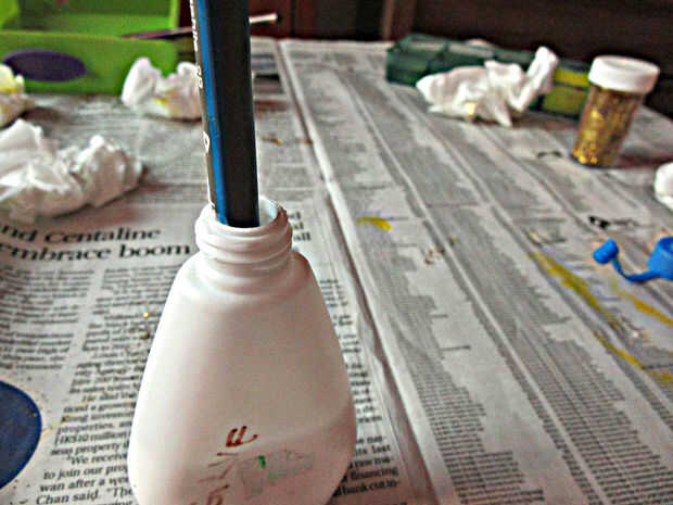 Este es un Portavelas de bricolaje muy fácil. El brillo en el frasco tiene una forma encantadora de la captura de la luz de la vela dentro, que me encanta. Vamos a empezar!Paso 1: Lo que usted necesita.VelaFrasco vacíoPegamentoBrilloPeriódico (para p