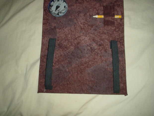 Poner las dos correas en la parte delantera, cerca de la mitad una pulgada de los bordes y el largo sólo lo suficiente para sostener la mitad una hoja de papel. Cortar un papel por la mitad y les angustia.