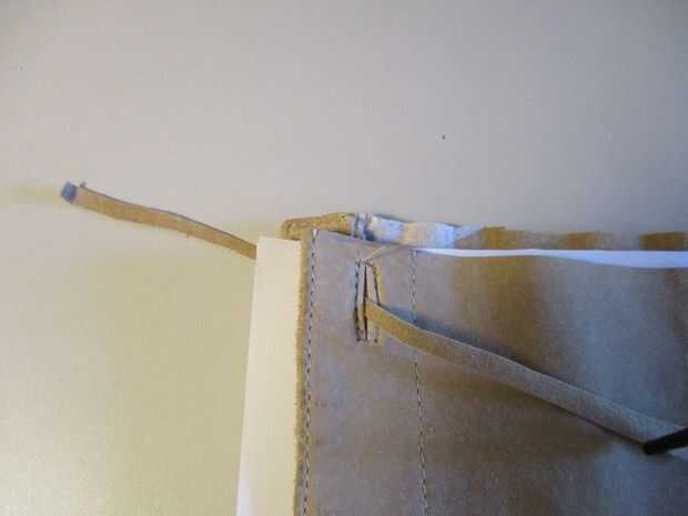 Derecha sobre izquierda, izquierda sobre derecha. No atar firmemente, ya que las páginas se necesitan abrir y cerrar. Dejar dar un poco.