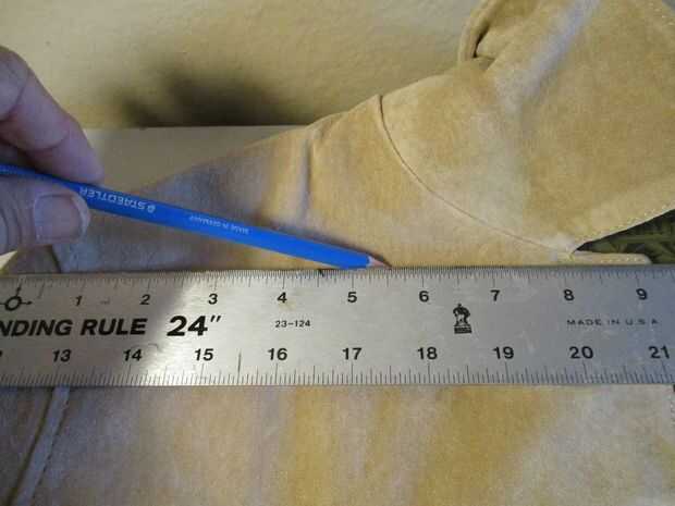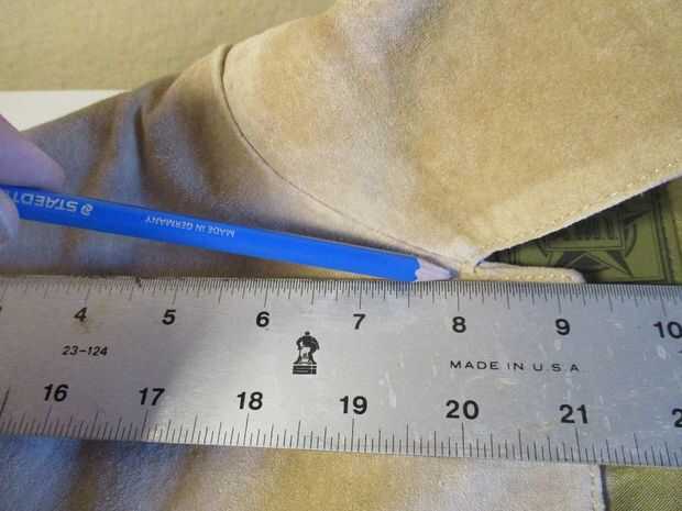 Utilice un borde recto para dibujar una línea en la parte superior de la chaqueta, por encima del ojal. Mantenerlo lo más recto posible, y conservar tanta piel como sea posible sobre el ojal.
