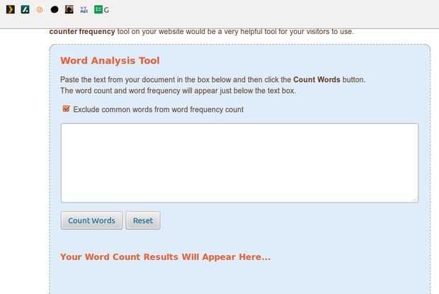 3) pegue en herramienta de análisis de palabra de Textfixer.com.