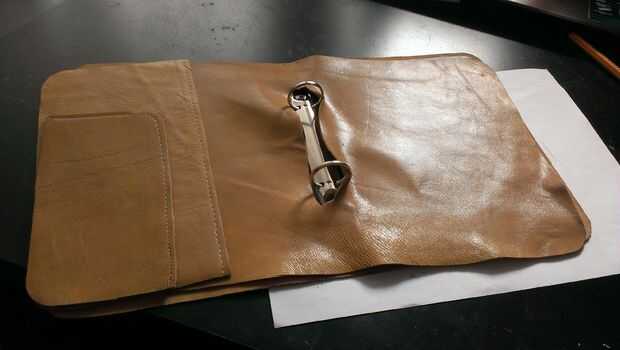 Seguro han notado que no se puede simplemente pegar la otra pieza grande de cuero en el interior de la carpeta...