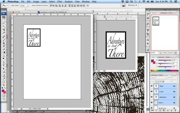 Si quieres que un título, crear por separado y asegúrese de que el tamaño es adecuado. Creé mina de 2 "x 3" y entonces se movieron las capas en un archivo que es 8.5 "x 11" por lo que imprimiría el tamaño apropiado después de que lo envié a imprimir.