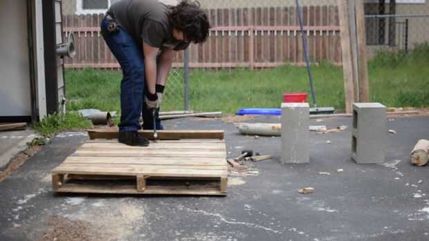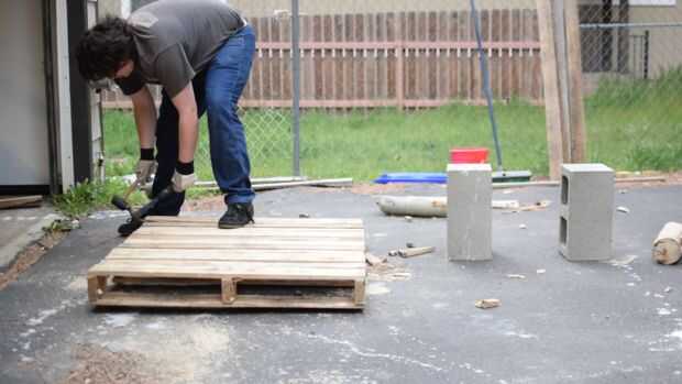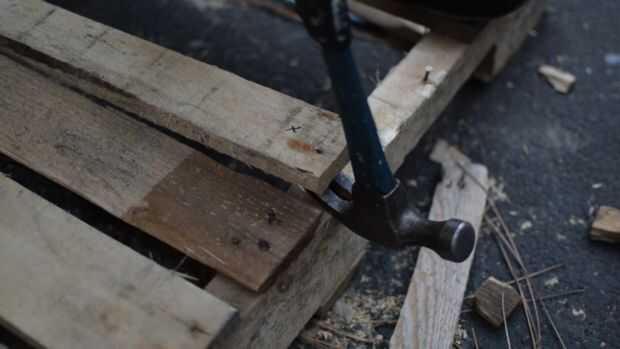 Encontré la mejor manera de quitar la madera del palet es doble-blandir martillos. Poner un martillo bajo neath un tablero (como todo lo que pueda) y luego venció la parte superior de él con otro martillo o un mazo en mi caso. Tenía seis tableros para tirar para arriba y les tengo todo en unos 10 minutos.
