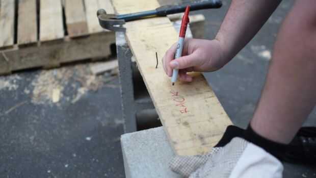Este estante simple patín puede personalizarse fácilmente para patinetas hasta cinco y se puede construir con una solo 8' x 2" x 4" pieza de madera. Si eres capaz de encontrar una pieza bonita, superficie de madera sólo necesita una sierra para