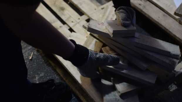 Después cortado un trozo (Use guantes. Las astillas son reales) sacó del marcador y escribió lo que era para el, y cuánto es si es necesario. Las capas atrás había piezas de 12, 13 y 14 pulgadas, la longitud de la escritura se convirtió en útil.