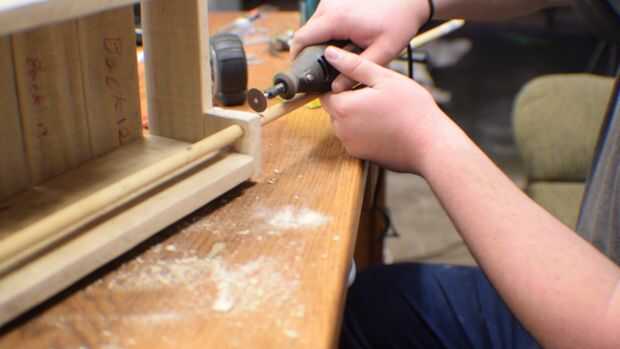 He medido una media pulgada de la parte superior y lateral de la pieza lateral y perforar el agujero para el pasador. Después deslizándolo a través de marca cuánto es necesario, luego cortó el resto con mi herramienta de corte de dremel.