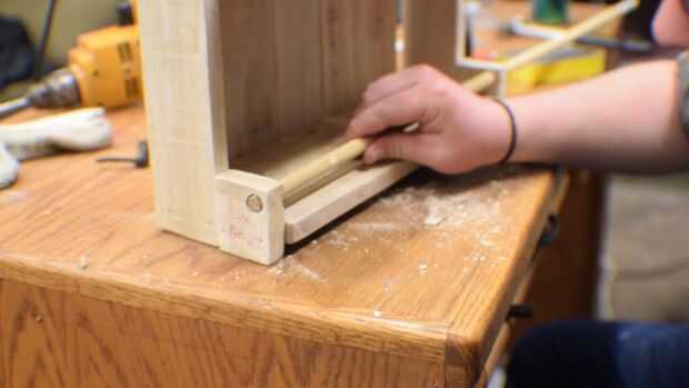 Último paso de la construcción de los estantes de forma principal: agregar la barra de en frente para mantener las botellas de píldora resbalen.