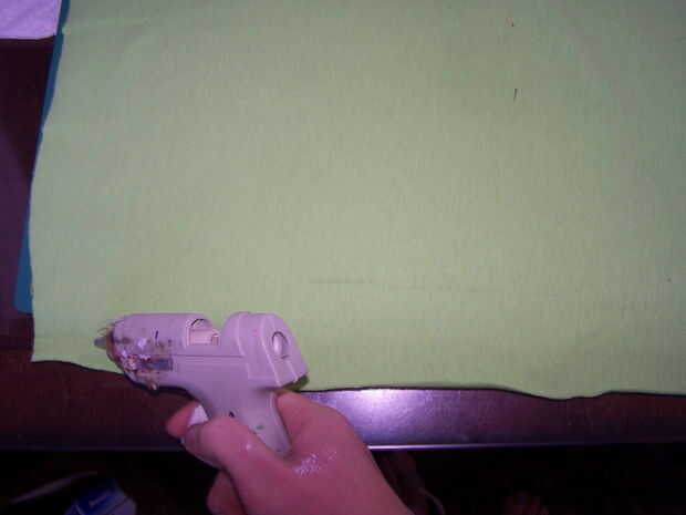 Poner pegamento caliente en la parte inferior de la tela y doble sobre la línea que trazaste. Hacer esto sólo por la parte inferior de la tela; la parte superior tendrá que ser recortado.