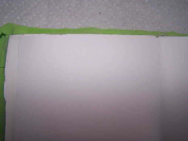 Poner pegamento caliente a lo largo del borde inferior de la Junta de espuma (el borde sin el algodón). Presione el borde del paño que previamente caliente pegado al borde de la Junta de espuma. La tela debe cubrir ahora el borde inferior de la revista.