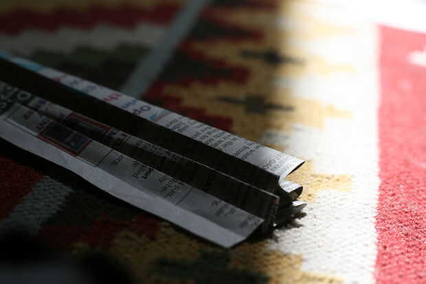 Cortar un trozo de periódico. El tamaño no necesita ser una longitud específica, siempre y cuando es lo suficientemente grande como para cubrir un lado del zapato. Doblar cada tira acordeón-estilo; como si estás haciendo un abanico de papel.