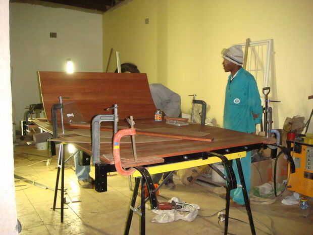 Necesidad es la madre de todas las invenciones...Ya que actualmente vivo en un apartamento sin ningún cuarto extra que podría dar vuelta en un taller, tuve que subir con una manera de exprimir un banco de trabajo en lo que tenía. Por suerte para mí,