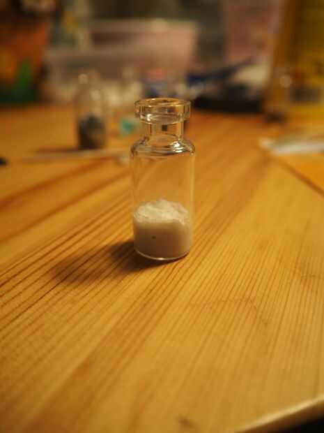 Tomar un poco de arena de color claro y llene un tercio del frasco con la mezcla de arena de la laca. Deje que se seque completamente.