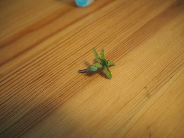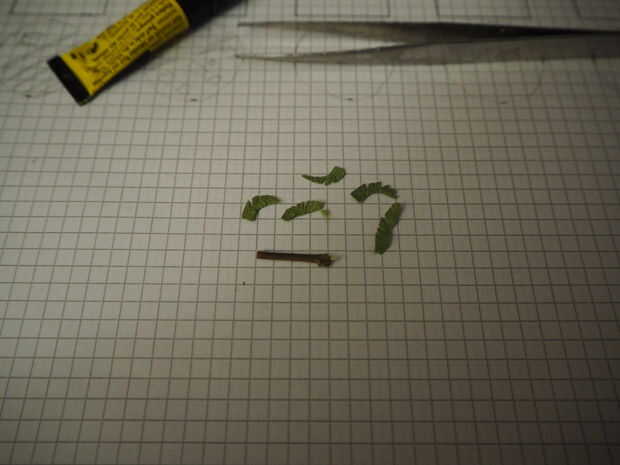 Hacer un árbol de Palma pequeño. Tomar una bifurcación de unos 18 mm de longitud. Para conformar las hojas, cortadas un papel verde en cinco pequeñas tiras con redondean extremos y corte algunas incisiones en un lado de ellos. Ahora pegar encima de la bifurcación.