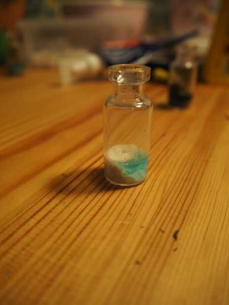 Mezcla pegamento claro con un poco de tinta azul o turquesa. Poner en la pequeña bahía. La más fácil manera el pegamento justo donde usted lo quiere es con una jeringa y una aguja ancha. El pegamento se encogerá un poco, así que poner un poco más en lo que desea al final.